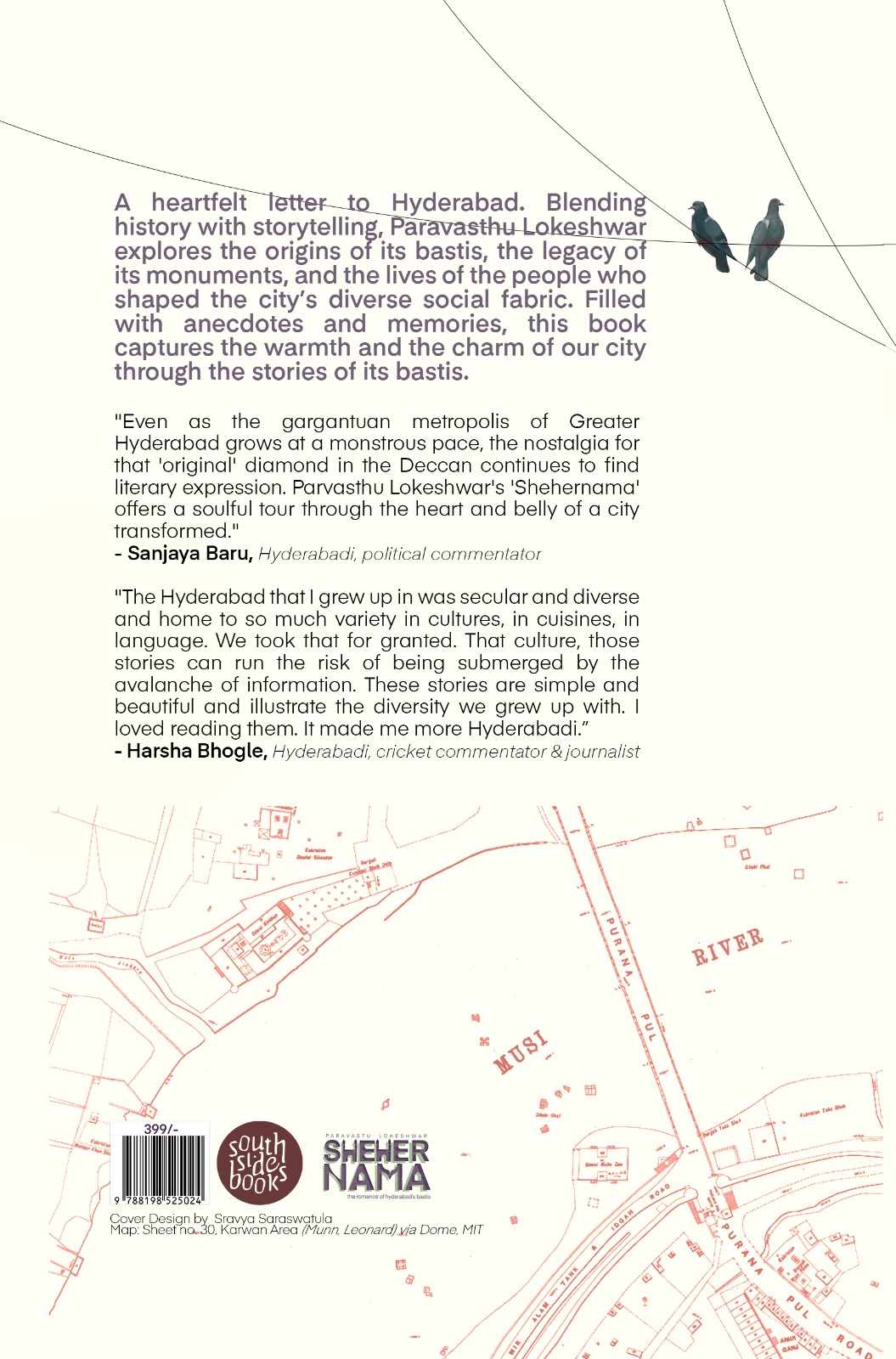 A heartfelt letter to Hyderabad. Blending history with storytelling, Paravasthu Lokeshwar explores the origins of its bastis, the legacy of its monuments, and the lives of the people who shaped the city's diverse social fabric. Filled with anecdotes and memories, this book captures the warmth and the charm of our city through the stories of its bastis. "Even as the gargantuan metropolis of Greater Hyderabad grows at a monstrous pace, the nostalgia for that 'original' diamond in the Deccan continues to find literary expression. Paravasthu Lokeshwar's 'Shehernama' offers a soulful tour through the heart and belly of a city transformed." -- Sanjaya Baru, Hyderabadi, political commentator "The Hyderabad that I grew up in was secular and diverse and home to much variety in cultures, in cuisines, in language. We took that for granted. That culture, those stories can run the risk of being submerged by the avalanche of information. These stories are simple and beautiful and illustrate the diversity we grew up with. I loved reading them. It made me more Hyderabadi." -- Harsha Bhogle, Hyderabadi, cricket commentator & journalist